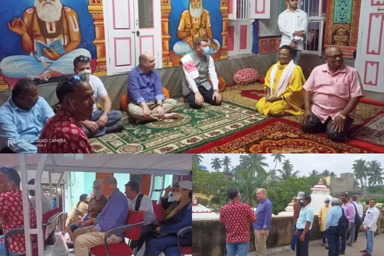 ପ୍ରଥମେ ତୋଟା ଗୋପିନାଥ, ଜମ୍ବେଶ୍ବର ମନ୍ଦିର, ହରଚଣ୍ତି ସାହିସ୍ଥିତ ଭାରତ ଯୋଗ କେନ୍ଦ୍ର ବୁଲି ଦେଖିଥିଲେ। ସେଠାରେ ରମାବଲ୍ଲଭ ମହାପାତ୍ର ଯୋଗ ସମ୍ପର୍କରେ ଆଲୋକପାତ କରିଥିଲେ। ଜଗନ୍ନାଥ ମନ୍ଦିର ବେଢା ପରିକ୍ରମା, ଶ୍ବେତଗଙ୍ଗା ପୁଷ୍କରିଣୀ ବୁଲି ଦେଖିବା ସହ ଜିୟରସ୍ୱାମୀ ମଠରେ ବେଦପାଠ ଶୁଣିଥିଲେ। ମଣିକର୍ଣ୍ଣିକା ସାହି ଓ ହରଚଣ୍ତି ସାହି ମଧ୍ୟଦେଇ ଯିବା ବେଳେ ପ୍ରାଚୀନ ପରମ୍ପରା ଓ ପୁରାତନ ନିର୍ମାଣ ଶୈଳୀ ଦେଖି ସେମାନେ ସେସବୁର ପ୍ରଶଂସା କରିଥିଲେ। ସେମାନଙ୍କୁ ଭବ୍ୟ ସ୍ୱାଗତ କରାଯାଇଥିଲା।