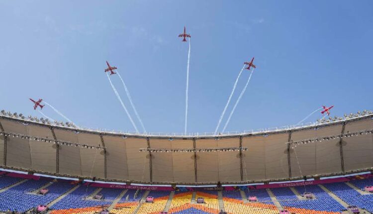 ନୂଆଦିଲ୍ଲୀ:ୱାର୍ଲ୍ଡକପର ଫାଇନାଲ ମ୍ୟାଚ ଅହମ୍ମଦାବାଦର ନରେନ୍ଦ୍ର ମୋଦୀ ଷ୍ଟାଡିୟମରେ ଆସନ୍ତା ୧୯ ତାରିଖରେ ଖେଳାଯିବ । ଭାରତ ଓ ଅଷ୍ଟ୍ରେଲିଆ ମଧ୍ୟରେ ହେବାକୁ ଥିବା ଫାଇନାଲ ମ୍ୟାଚ ପୂର୍ବରୁ ଏୟାର ଶୋ’ର ଆୟୋଜନ ହେବ । ଭାରତୀୟ ବାୟୁସେନାର ସୂର୍ଯ୍ୟକିରଣ ଟିମ୍ ପାଖାପାଖି ୧୦ ମିନିଟ୍ ଏୟାର ଶୋ’ କରିବ । ଏଥିଲାଗି ଅଭ୍ୟାସ ମଧ୍ୟ କରାଯିବ ।