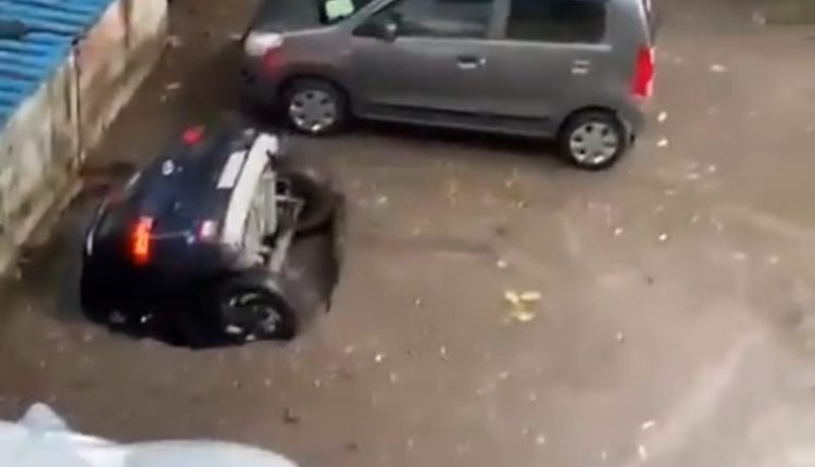 ମୁମ୍ବାଇର ଏକ ଦୃଶ୍ୟ: ପାର୍କିଂରେ ଥିବା କାରଟି ସମ୍ପୂର୍ଣ୍ଣ ମାଟି ଭିତରକୁ ପଶି ଗଲା