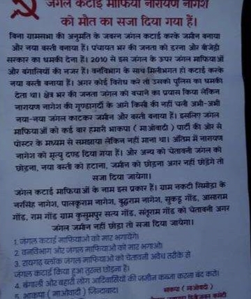 ନବରଙ୍ଗପୁର,ଏନ୍‌ଏନ୍‌ଏସ୍‌: ନବରଙ୍ଗପୁର ଜିଲ୍ଲା ରାଇଘର ଅଞ୍ଚଳରେ ଦିନକୁଦିନ ମାଓ ହିଂସା ବଢ଼ିବାରେ ଲାଗିଛି । ମାଓବାଦୀମାନେ ଗୋଟିଏ ପରେ ଗୋଟିଏ ହତ୍ୟାକାଣ୍ଡ ଭିଆଇ ଚାଲିଛନ୍ତି । ଗତ କିଛିଦିନ ପୂର୍ବରୁ ଜଣେ ଯୁବକକୁ ଘରୁ ଡାକି ନେଇ ନିର୍ମମ ଭାବେ ହତ୍ୟା କରିଥିଲେ । ସେ କ୍ଷତ ନ ଲିଭୁଣୁ ଆଜି ଜଙ୍ଗଲ କାଟିବା ଅଭିଯୋଗରେ ଅନ୍ୟଜଣକୁ ହତ୍ୟା କରିଛନ୍ତି । ମୃତକ ଜଣକ ହେଲେ ରାଇଘର ବ୍ଲକ ଅନ୍ତର୍ଗତ ନାକଟିସିମୋଡ଼ା ପଞ୍ଚାୟତ ଲକ୍ଷ୍ମଣପୁର ଗ୍ରାମର ନାରାୟଣ ନାଗେଶ(୩୮) । ଜଙ୍ଗଲ କାଟି ଗ୍ରାମ ବସାଇବା ଅଭିଯୋଗରେ ମୃତ୍ୟୁଦଣ୍ଡ ଦିଆଯାଇଛି ବୋଲି ଘଟଣାସ୍ଥଳରେ ପଡ଼ିଥିବା ମାଓ ପୋଷ୍ଟରରେ ଲେଖାଯାଇଛି । ନାରାୟଣ ଜଣେ ଜଙ୍ଗଲ ମାଫିଆ ବୋଲି ପୋଷ୍ଟରରେ ଉଲ୍ଲେଖ କରାଯାଇଛି । ମୈନପୁର ପନୂଆପଡ଼ା ଡିଭିଜନ କମିଟି(ମାଓବାଦୀ) ପକ୍ଷରୁ ପୋଷ୍ଟର ମାଧ୍ୟମରେ ଜଣେଇ ଦିଆଯାଇଛି ।