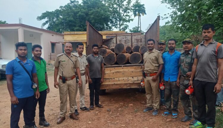 ଚୋରା ଚାଲାଣ ବେଳେ କାଠ ଗଣ୍ଡି ସହ ମିନି ଟ୍ରକ ଜବତ