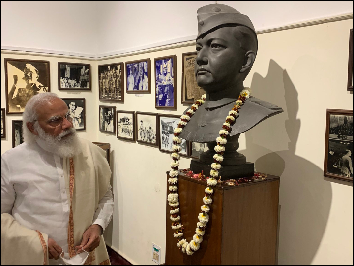 ନୂଆଦିଲ୍ଲୀ: ସୁଭାଷ ଚନ୍ଦ୍ର ବୋଷଙ୍କ ୧୨୫ତମ ଜନ୍ମ ଜୟନ୍ତୀ ଅବସରରେ ‘ପରାକ୍ରମ ଦିବସ’ ପାଳନ କରିବା ପାଇଁ ପ୍ରଧାନମନ୍ତ୍ରୀ ମୋଦୀ କୋଲକାତା ଗସ୍ତ କରିଛନ୍ତି। ଏହି ଅବସରରେ ସେ ନେତାଜୀ ଭବନ ଓ କୋଲକାତା ଲାଇବ୍ରେରୀ ପରିଦର୍ଶନ କରିଛନ୍ତି। ସେଠାରେ ସେ ଅନେକ କଳାକାର ଓ ପ୍ରତିନିଧୀ ସହ ଆଲୋଚନା କରିବା ସହ ଗ୍ରୁପ ଫଟୋ ମଧ୍ୟ ଉଠାଇଛନ୍ତି। ସେ ନେତାଜୀ ସୁଭାଷ ଚନ୍ଦ୍ର ବୋଷଙ୍କ ପ୍ରତିମାରେ ମାଲ୍ୟାର୍ପଣ କରିଛନ୍ତି। ଏଥିସହିତ ଭିକ୍ଟୋରିୟା ମେମୋରିଆଲରେ ଆୟୋଜିତ ‘ପରାକ୍ରମ ଦିବସ’ ସମାରୋହକୁ ସମ୍ବୋଧିତ କରିବାର କାର୍ଯ୍ୟକ୍ରମ ରହିଛି।